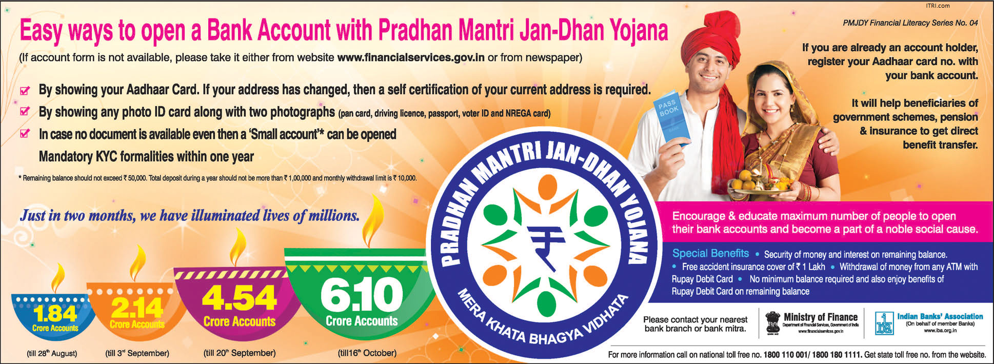 Pradhan Mantri Jan-Dhan Yojana (PMJDY) is National Mission for Financial Inclusion to ensure access to financial services, namely, Banking/ Savings & Deposit Accounts, Remittance, Credit, Insurance, Pension in an affordable manner.
